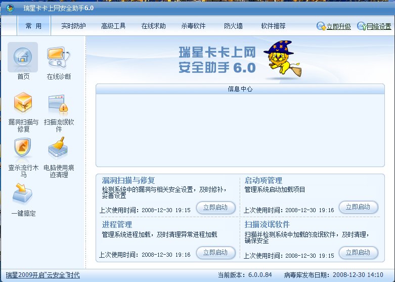 如果勾选了显示信息中心就没事了。这是网络问题,不是瑞星本身的问题。我的也经常这样,甚至连瑞星网和卡卡网都无法显示,不过等一会就正常了。我的经验是:不要没事经常去“修复”,除非万不得已。有些人就只会回帖叫人家“修复”,其他一句有用的话也没有。
