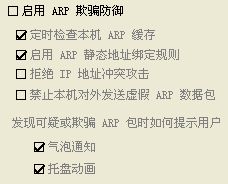 【启用 ARP 欺骗防御】:用户只有在勾选此项并点击【确定】按钮后,才能实现欺骗防御的功能。
