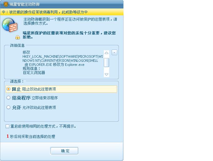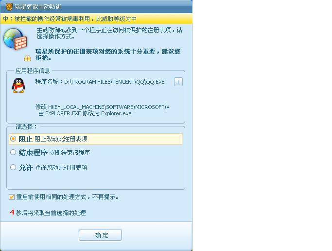 求助:QQ启动时瑞星提示被修改注册表!