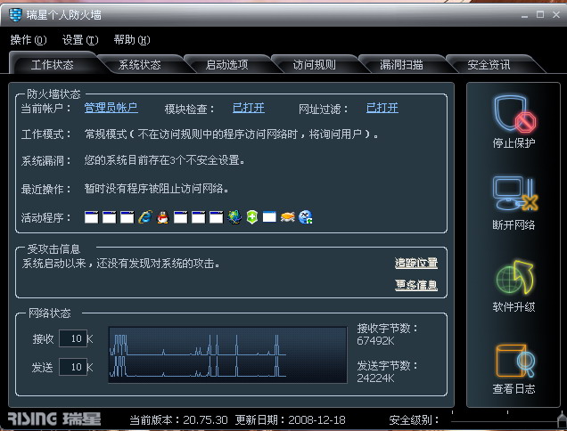请注意我的防火墙还有漏洞扫描和以前2008的功能。但升级却是最新版本了,我这样的属于正常的吗?反正和我重装前的09版的防火墙不一样。