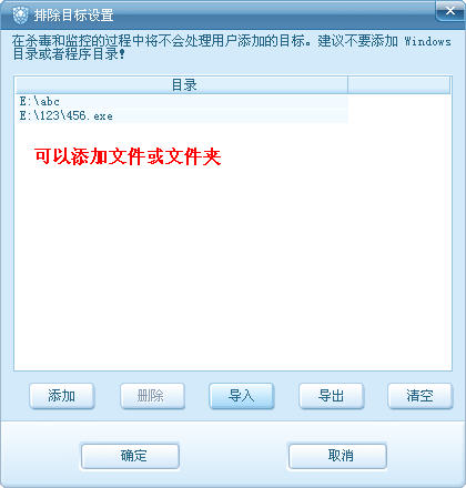 “排除杀毒目标”,这个名称可能是很多人产生误解的根源,大多数人认为只有在进行扫描的时候才被称为“杀毒”,其实“实时监控”在发现病毒时也会进行“杀毒”操作。