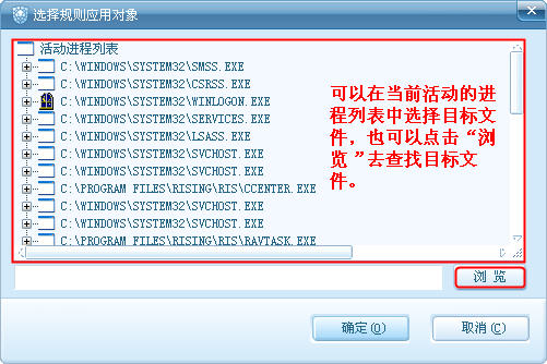 点击添加后,可以在当前活动的进程列表中选择目标文件,或者点击“浏览”,根据路径找到目标文件