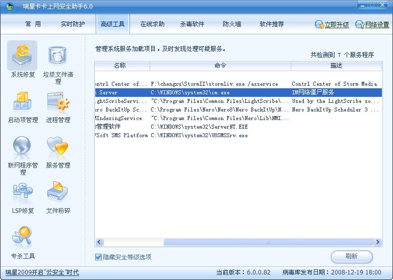 最后,用卡卡修复了主页,并删除了该服务。通过这件事,使我对卡卡增加了许多好感,感觉卡卡进步了许多,加油,卡卡,不要辜负我在瑞星软件上花的银子!!!:default6: