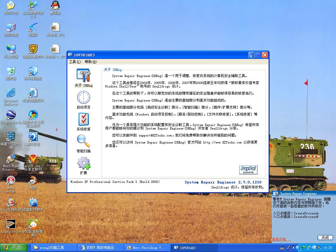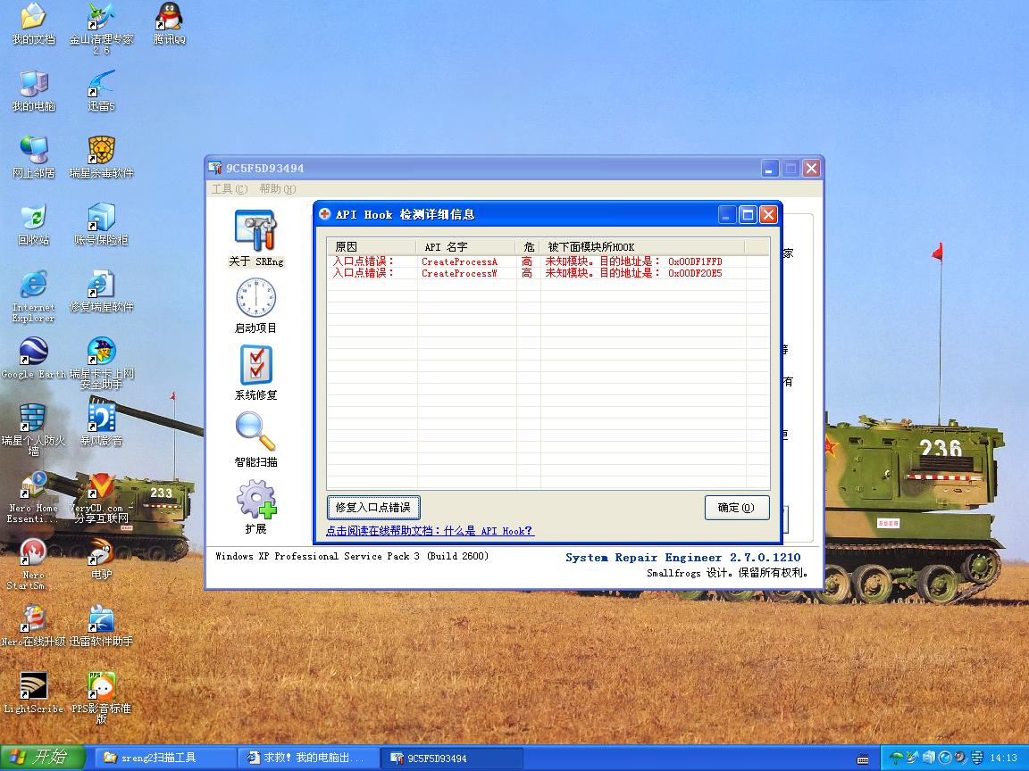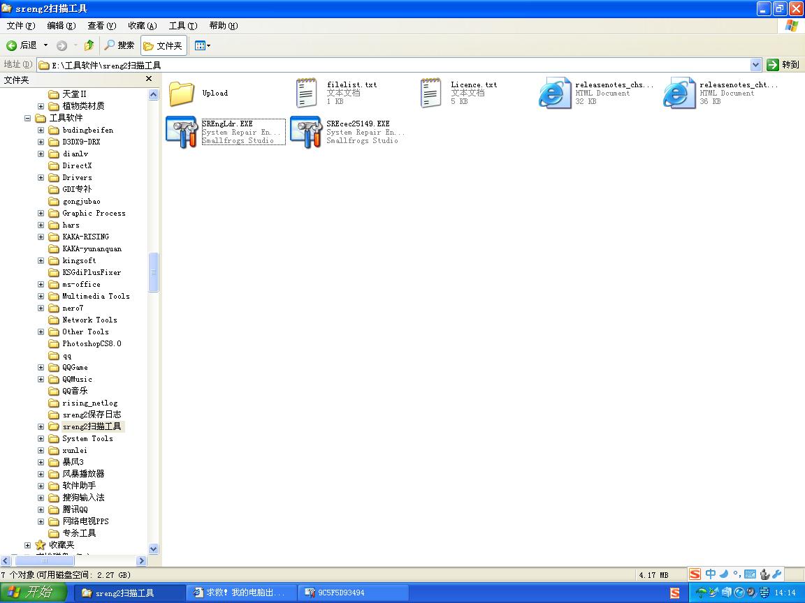 networkedition 大侠,不好意思又要打扰您。您给的下载地址,我选的本地高速下载,下的SRENG2.ZIP的压缩包,解压缩后无论是点开压缩包还是将里面文件解压缩到新文件夹里,都没有SREngPS.EXE文件,而是SREngLdr.EXE文件,如附件而运行该程序后,出现了警告提示说有端口被修改,点击显示详情后出来一个列表框,同时出现SREcec25149.EXE文件,而如果按列表提示点击“修复入口点错误”,则提示修复过程中有可能当前进程崩溃,请问这是怎麽回事?是不是不用理会端口错误问题,直接在10F5E3AE3界面直接选择相应选项开始扫描;还是我的压缩包下载一开始就有问题,需要重新下载?请帮忙解答,谢谢:default7: