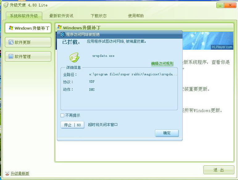 汗 那就是防火墙的一个功能 当有网络程序试图访问网络的时候 会提示你是否让其访问网络 当出现该提示时候 点击总是允许即可 当你不回应他的提示的时候 默认是拒绝此次访问网络的行为 但不会始终拒绝 当该程序再次访问网络的时候 仍会提示你 如果确认是安全程序 点“总是允许”就可以