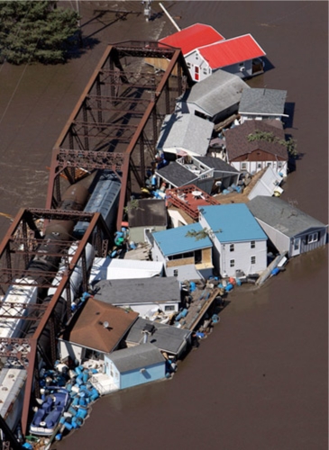 6月14日,爱荷华州斯达拉皮德市,河水的泛滥竟使房屋、船只、杂物被冲到铁轨附近。从今年6月初,美国中西部河流上游地区便普降大雨,这令成千上万的人背离家园,造成了数十亿美元的损失。(图片来源:美联社)