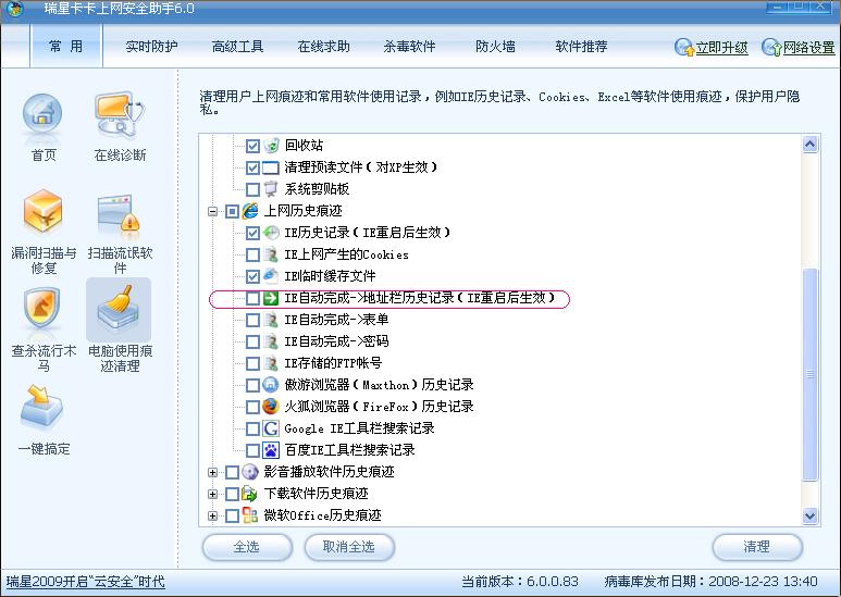 卡卡助手6.0提供单独清理地址蓝了吗 我还在用5.2啊 谁告诉我一下