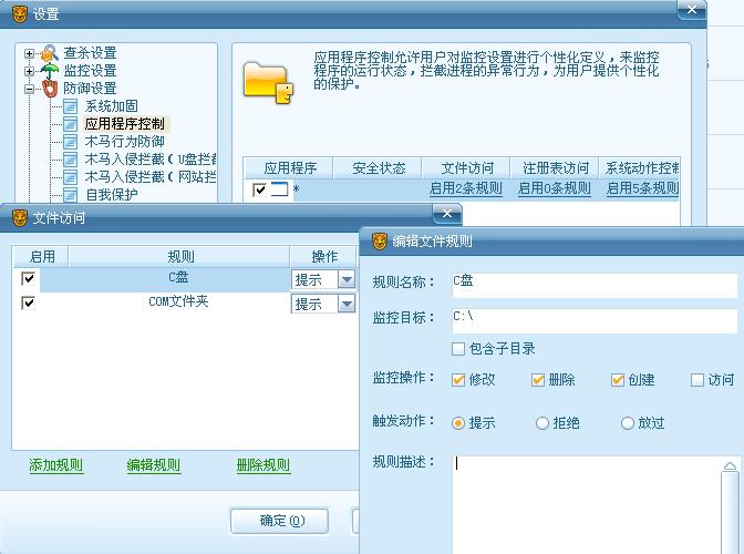 我设定了如图的规则!!为什么我在C盘创建文件,瑞星不提示!!