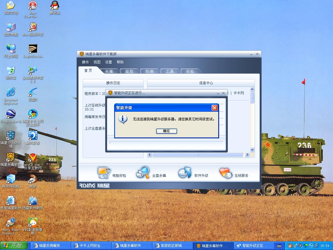 我用的08下载版,今天出现显示连接不了瑞星服务器得提示框,如下图。请问09标准版和升级专用版有何区别?我的08下载版可以升级到09版吗?