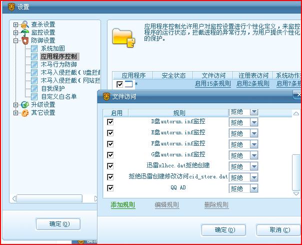 同样在 防御设置-应用程序控制-文件访问 (*项)规定: