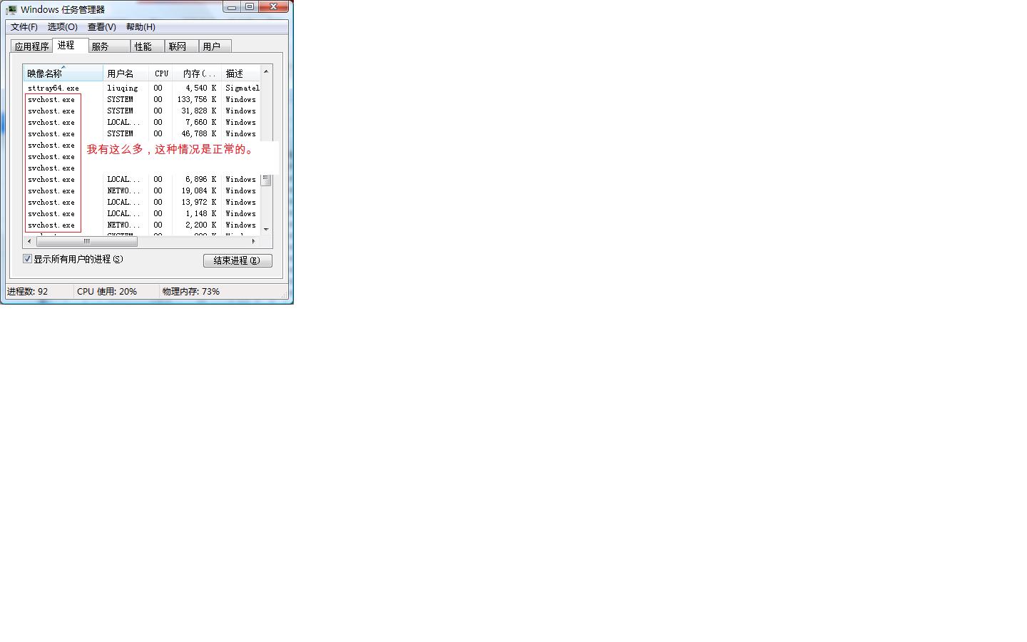 楼主这种情况是正常的,你开的程序越多这个进程就越多。这个进程是不可缺少的进程 。。
