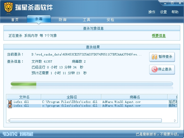 文件名iefxz.dll 路径c:\program files\iefxz\iefxz.dll 病毒名:AdWare.Win32.Agent.cov