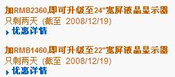 现在迷茫的是显示器目前有优惠,+2360可以配24寸宽屏,+1460可以配22寸的。我想问下现在24的和22的有多大区别啊?还有我看DELL 24寸的有好几款,这个又是哪款呢?