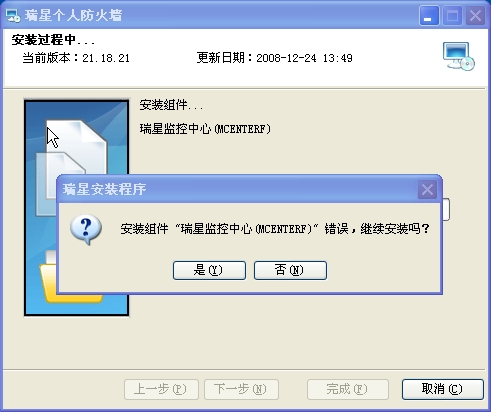 已经是第二次了,安装老是提示失败,然后桌面下的防火墙图标就不亮,从前天晚上防火墙提示更新并重起后再安装一直就是这样,而且我的瑞星卡卡不显示防火墙就算了,连杀度软件都不显示,今天晚上7点左右我在剑侠世界里的所有游戏号都被盗劫一空,我对瑞星无语了!该怎么解决?我在瑞星网站也重下过防火墙程序了,现在防火墙也安装不了,逼迫连接网络进网站,我现在该怎么做?瑞星卡卡也升级不了