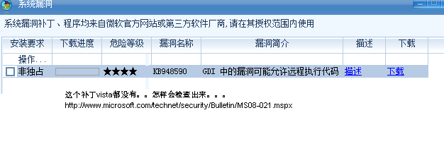 卡卡?这个补丁vista都没有。。怎样会检查出来。。。