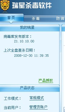打开杀毒软件,看左上角的标题是什么?不知道的话,还可以将瑞星打开,将桌面截屏发到这里来。