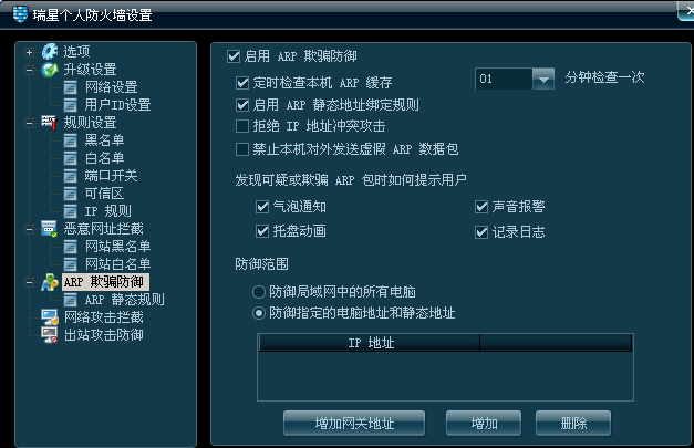 我打开了瑞星防火墙的网络攻击拦截。是拦截下来了攻击。。但是气泡提示无法关闭啊。。每次老出现。一会一个一会一个。很烦人的。在瑞星的防火墙设置里面找不到关闭网络攻击拦截气泡提示的选项。