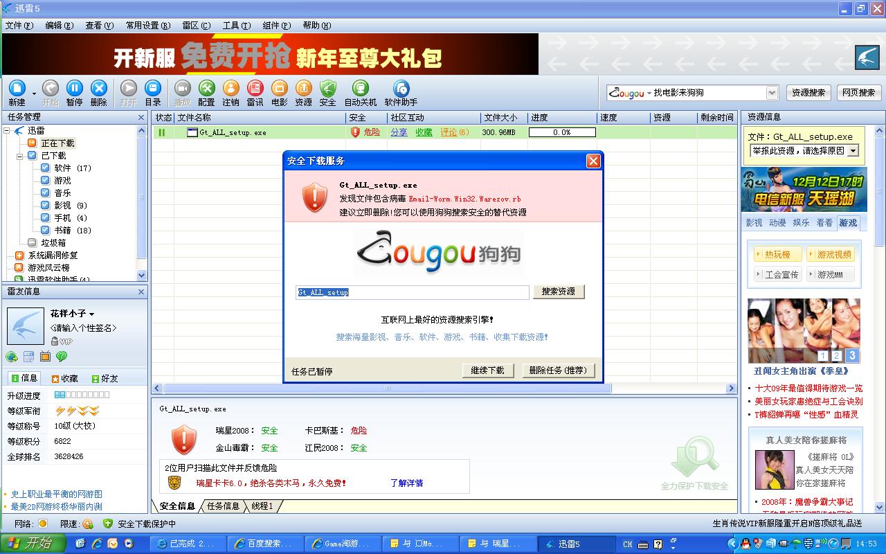 我不用下载工具下载后,用瑞星2009(21.19.20)查杀,没有发现病毒,所以不清楚到底谁对谁错,希望尽快有结果,谢谢