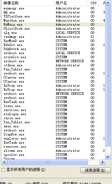 2,任务管理中,rsmain任务已经在运行...也就是说显示不出界面.