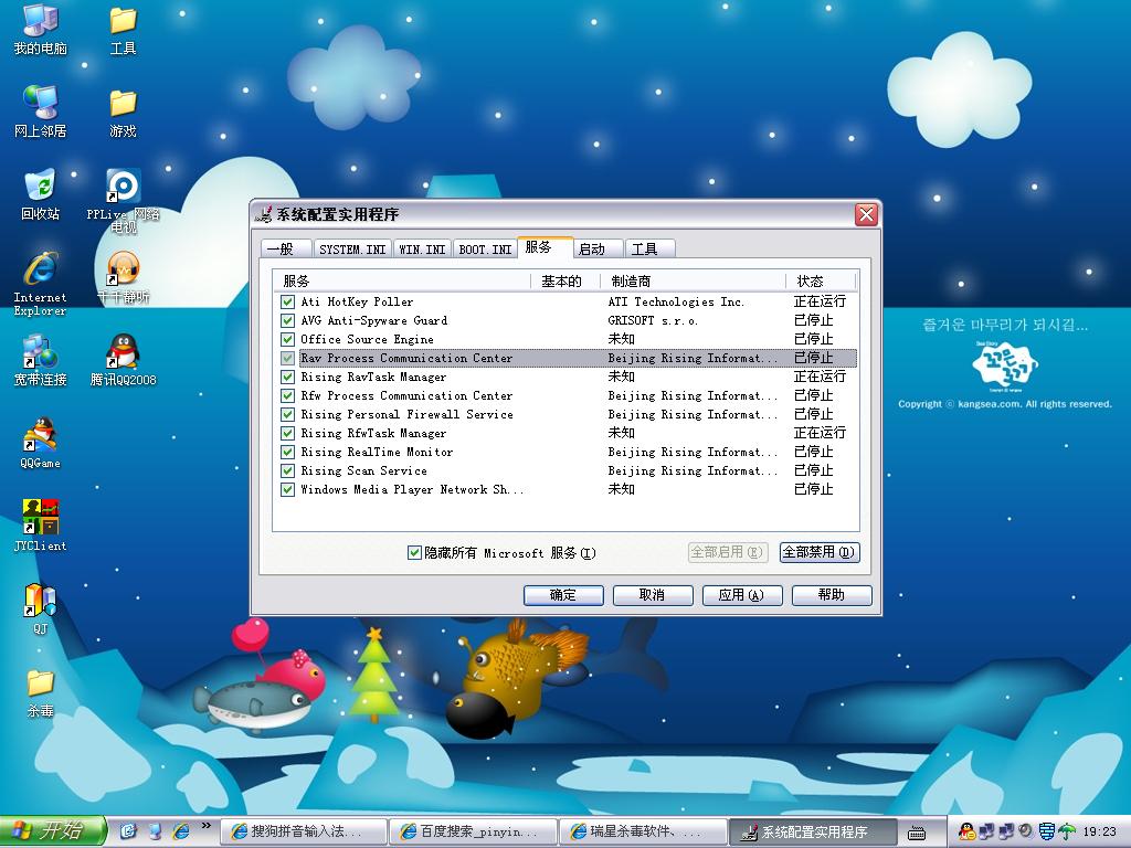 为什么我的服务里面署名时瑞星公司的 都被禁止了 ,而一些未知署名的瑞星服务项却开着,被禁止的都是2008的吗,我现在用的时2009组合版的,从2008升级上来的,如果被禁止的都是2008的服务的话,怎么把这些服务删除?下面时截图