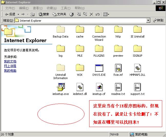 卡卡把我的IE浏览器给删了!!如何恢复啊??请支一招