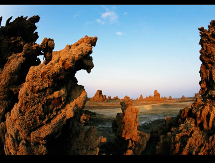 非洲吉布提阿贝湖附近的石灰华烟囱是由温泉沉积下的碳酸钙形成的,这一过程也能形成钟乳石和石笋。有些石灰华烟囱可以达到50米高。