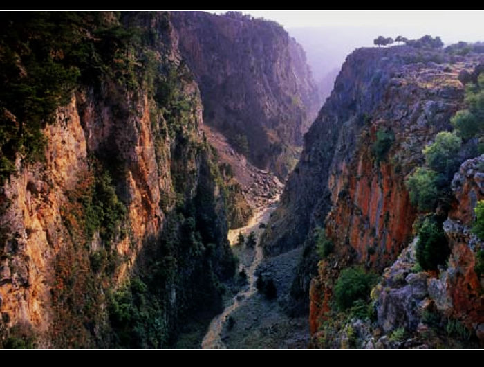 在克利特岛的阿xxx(Araden)废城附近,一个深远的峡谷垂直落下约650英尺(198米)。游客们能够下到峡谷并且行走一段约4英里(6.4公里)路程就能到达地中海。除此壮丽景色之外,这峡谷提供2460英尺(750米)的下坡路直达海洋。