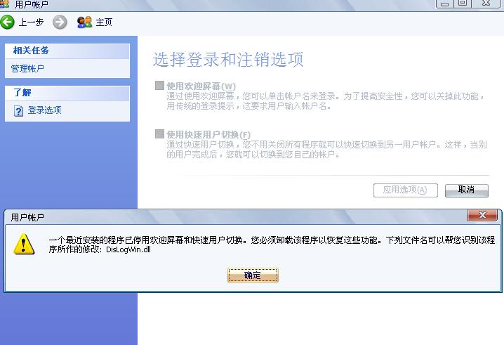 打开控制面板--用户帐户,更改登录和注销方式。把两个选项都选上。