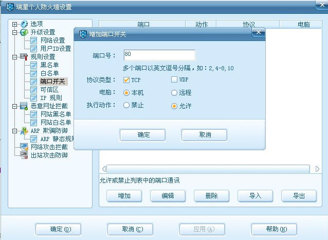 请问,是在IP规则还是端口开关?具体怎么设置啊?