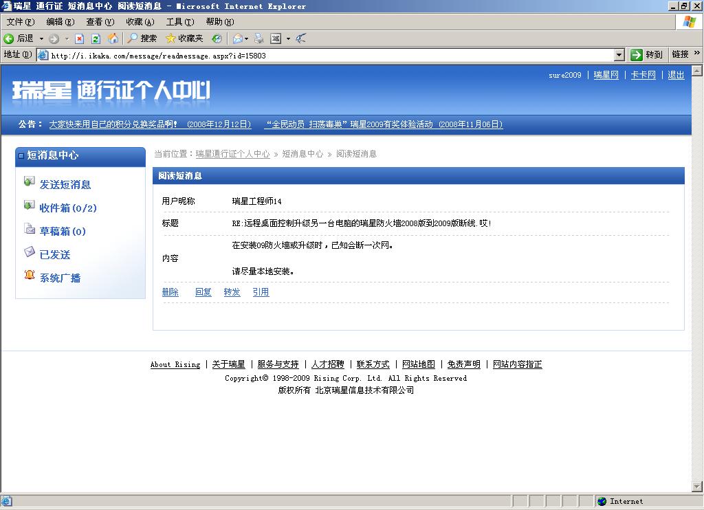 2009年1月11日 星期日 瑞星软件当前版本