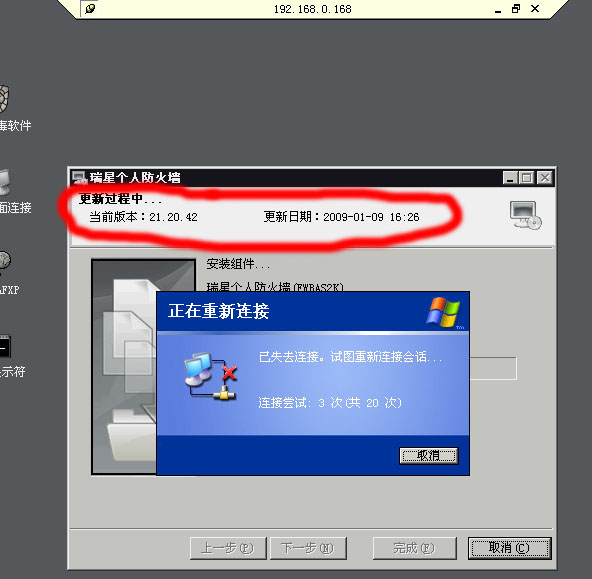 20.78.62 2008版防火墙20.78.xx不让升级了,强制上21版,可还是一升就断,TM的.