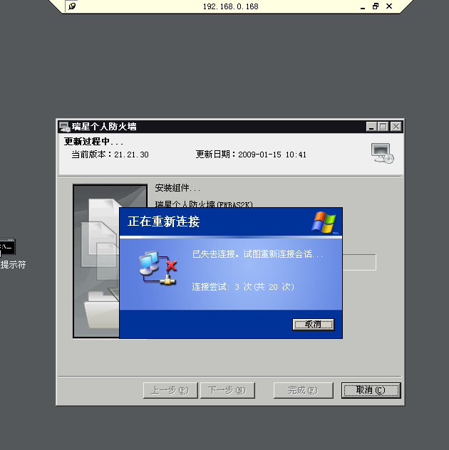 安装09防火墙会断一次网,建议楼主本地安装。