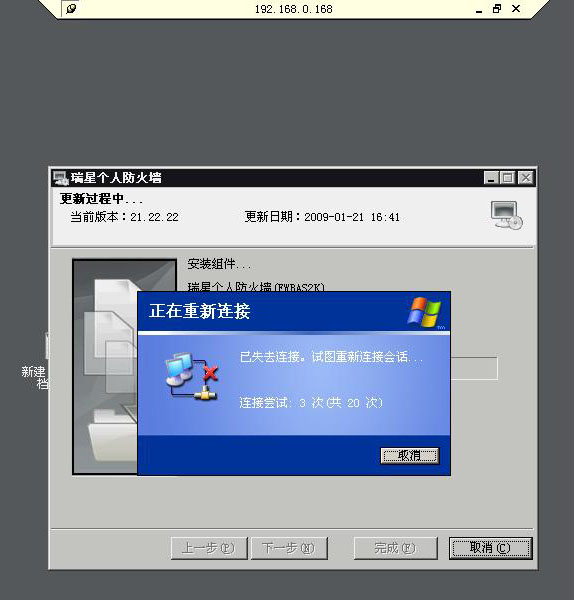 远程桌面控制升级另一台电脑的瑞星防火墙2008版到2009版断线.哎!