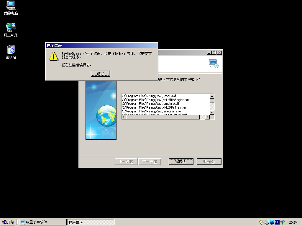 今天是2009年1月5日,瑞星版本21.11.02.00,WIN2000系统瑞星报错问题依然存在!