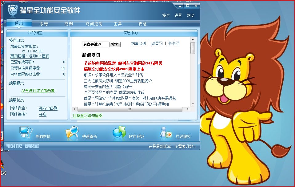 瑞星全功能安全软件今日中招了,无法升级,我曾打过电到瑞星客服,结果还是不能,我的想法就是中马了,