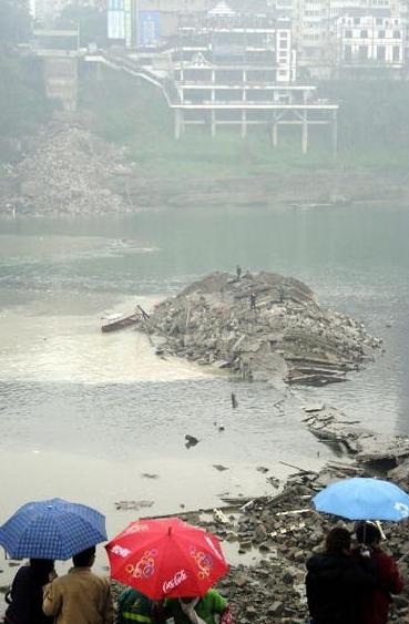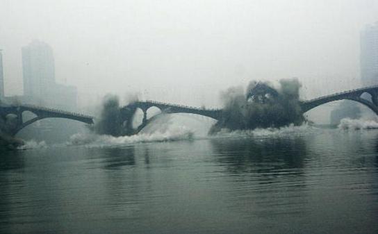 1月5日上午10时30分,随着“轰”的一声巨响,重庆市合川区涪江一桥的桥体瞬间沉入了江底,成功地实施了爆破拆除。1971年建成的涪江一桥曾经是国道212线上的一座跨江大桥,在经过37年的运行后终于完成了它的历史使命