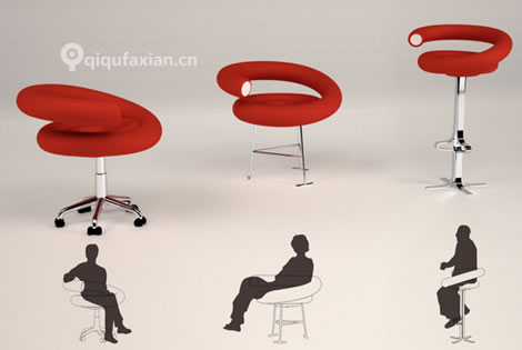 “蚊香”椅,这完全是我自己想出来的名字,设计师的灵感可不是来自于此,来自“糖果”,就是星爷《功夫》里的螺旋棒棒糖。有三种样式,办公、家庭、吧椅。设计:Rafael Fernandez。