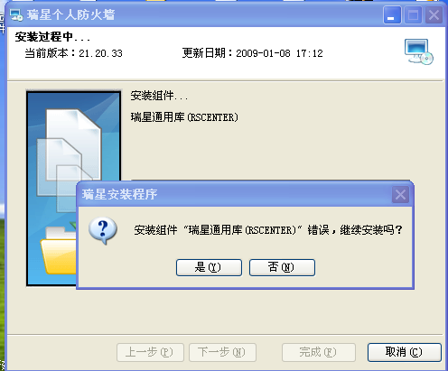 我的是一年期免费装防火墙!今天升级到09 就不能用了!修复出现如图所示!