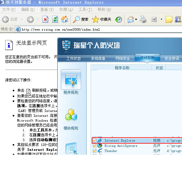 IE我设定拒绝访问网络,以前各版本也能达到这效果,而2009会自动允许,怎么才能让2009拒绝IE访问网络?