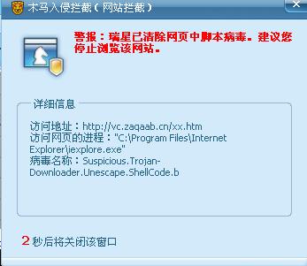 说明当前打开的网页中有恶意代码,不要访问,如果IE主页被改了,建议用卡卡助手来清理一下。:default7: