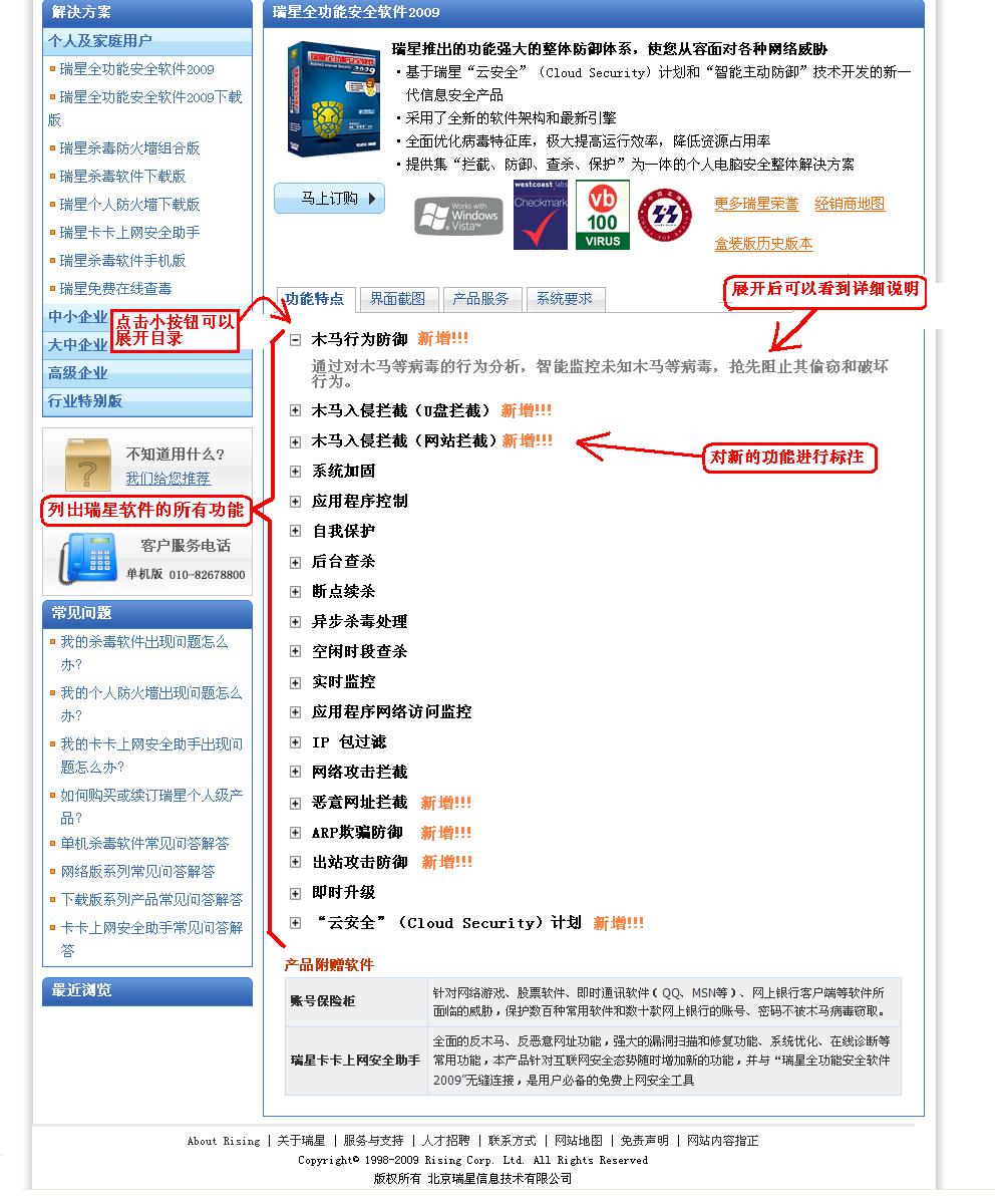 希望在“瑞星产品页面”上,对产品功能特点的介绍能更加详细。 地址: http://it.rising.com.cn/product2008/ris09.shtml?id=0