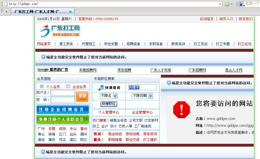 我们是一家正规专业性的人才网站。近来我的网站老实被你们瑞星卡卡上网助手拦截为有病毒的提示,我们经过排查,和用卡巴斯基,诺顿,NOD32,都没有发现病毒,我们也对网站的数据进行了多次的排查也均没有发现病毒。为什么我们的网站是有被你们软件提示有病毒,别的杀毒软件就没有。