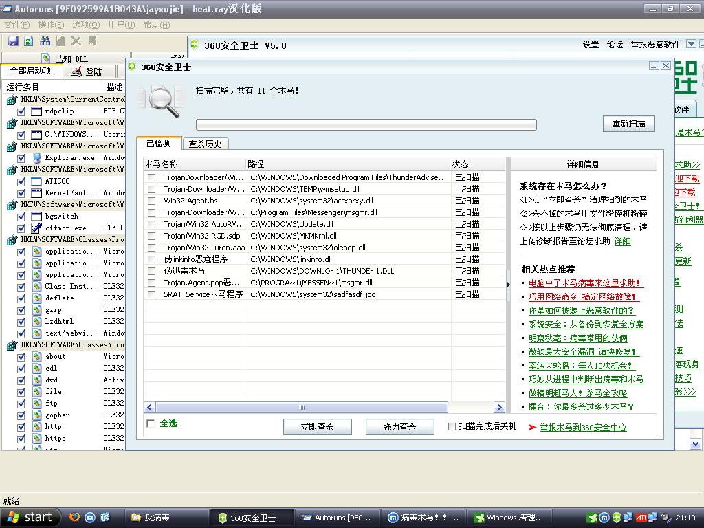 2.删除重启后使用SREng修复下面各项: 启动项目 -- 注册表之如下项删除: