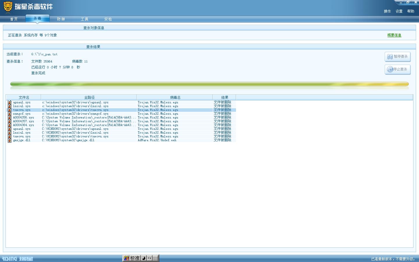 你现在升级杀毒软件至最新版本