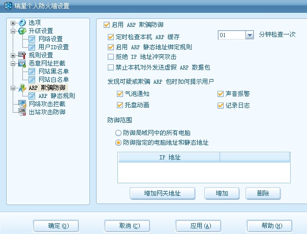 智能升级后总关网络监控的IP包过滤和ARP欺骗防御???/?:default2: