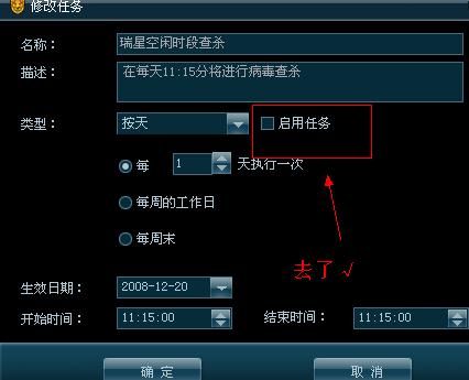 建议在手动查杀中去掉优化选项,在文件类型、病毒类型全选。每周查杀建议全盘扫描就这样设置,不必设置月扫描任务了。