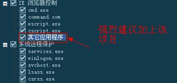 必须全选,免的病毒靠模拟按键禁用监控,卸载杀毒软件(注:历史上有过针对瑞星的自动卸载瑞星病毒(貌似是去年上半年),金山出过比金山自卸载卸载的还干净的病毒。。。。。。。。。。)