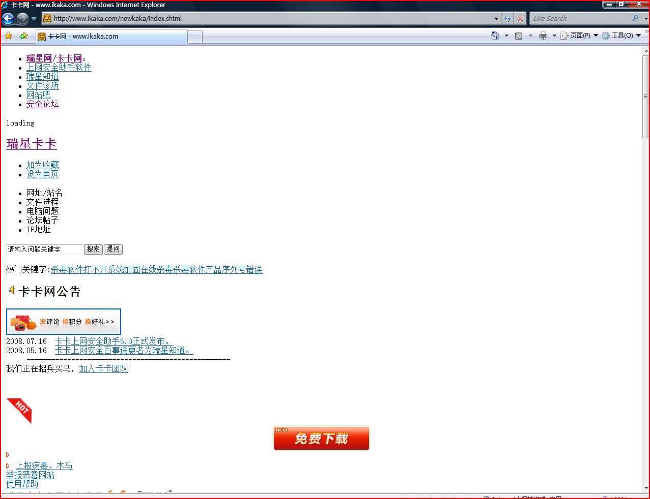 用户系统信息:Mozilla/4.0 (compatible; MSIE 7.0; Windows NT 6.0; SLCC1; .NET CLR 2.0.50727; Media Center PC 5.0; .NET CLR 3.0.04506)