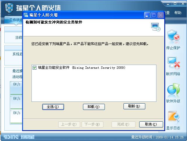我也遇到这个问题,解释是,安装了2009全功能软件就已经包含了防火墙,不需要再另外安装防火墙2009版了。