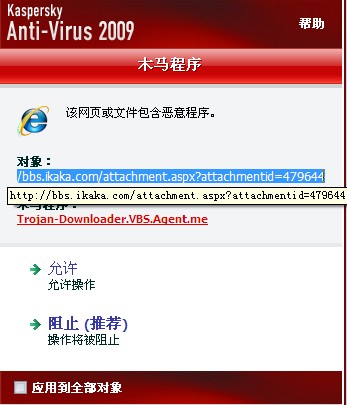 直接访问该网站或者在htm里面插入iframe指向该网站都会屏蔽这我还不知道。我说的是用我的这个脚本下载设定的网站的程序并运行,卡卡不屏蔽,而且瑞星不报警。